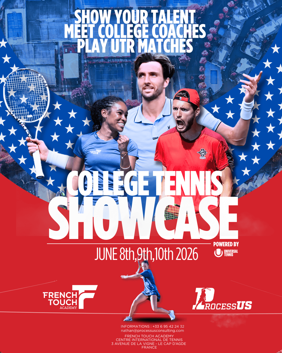 • Démontrez votre niveau de tennis aux entraîneurs des universités américaines qui viendront en France pour vous observer.